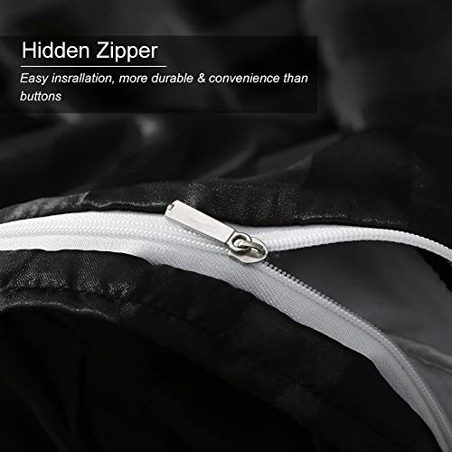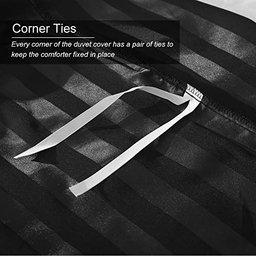 HOTNIU Set Copripiumino da Letto a Righe in Satin, Set Copripiumino in Seta Satin con Federa Cuscini, 3 Pezzi Tinta Unita Set Biancheria da Letto in Raso (Singolo, Nero)