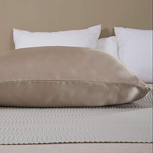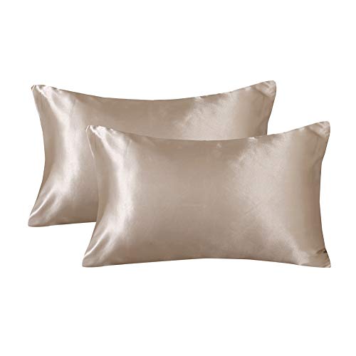 HOTNIU 2 pack Federe in Raso 100% Microfibra, Coppia di Federe Guanciale in Morbida Microfibra per Capelli e Pelle (20 * 30 inches, Taupe)