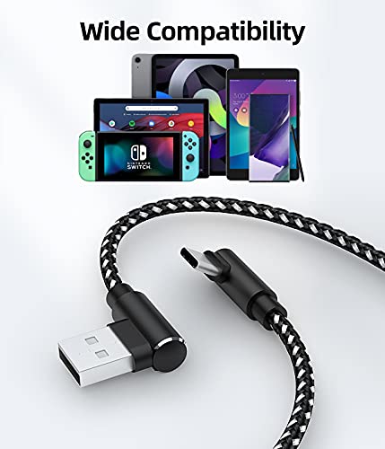 HOTNOW Cavo USB C corto ad angolo retto 0,3 m 3 pezzi, caricatore USB-C portatile Cavo di ricarica rapida intrecciato in nylon per Samsung Galaxy S10 S9 S8 Plus Note 9 8, Power Bank
