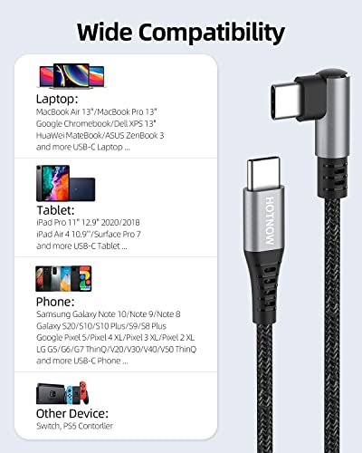 HOTNOW Cavo corto da USB C a USB C 30cm 3 pezzi, angolo retto 0,3m PD 60W USB 2.0 cavi di ricarica rapida per dispositivi di tipo C