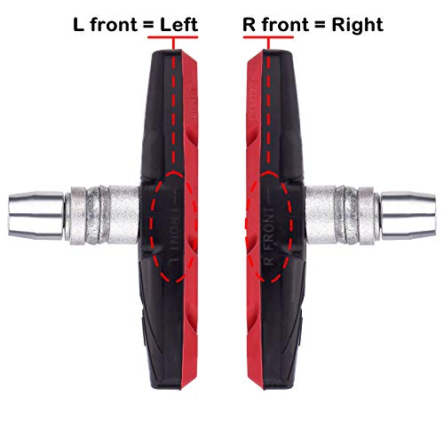 Pastiglie freno versatili tipo V: sostituzione adatta per la maggior parte delle bici con freno v, ciascuna coppia di pastiglie freno V ha destra e sinistra, si prega di leggere attentamente il testo sulle pastiglie freno