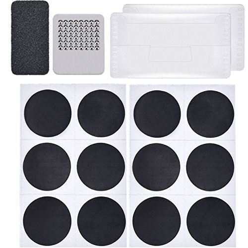 Facili da applicare: le toppe possono riparare le camere d'aria forate senza necessità di applicare colla extra, basta utilizzare la carta vetrata per levigare le camere d'aria e incollare la toppa saldamente sulla zona danneggiata.