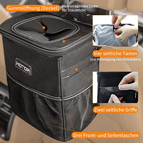 HOTOR Pattumiera per auto con coperchio e sacchetto di immagazzinaggio, 100% anti-perdita, accessori per auto impermeabili, per interni pattumiera auto, multiuso, colore nero