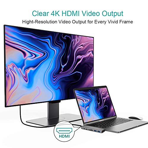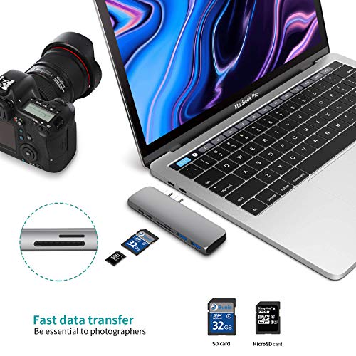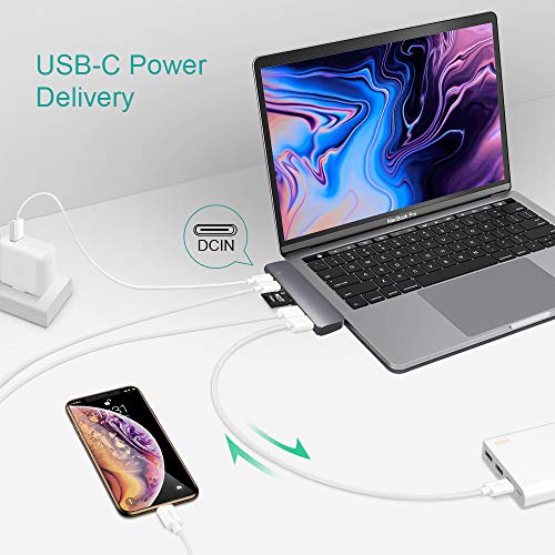 Hotott Hub USB C for MacBook Pro 2018,Adattatore USB-C con Thunderbolt 3,HDMI 4K, Lettore di schede SD/Micro SD,Power Deliver,USB C,USB 3.0,7 in 1 Hub Tipo C Alluminio per MacBook Air 2018