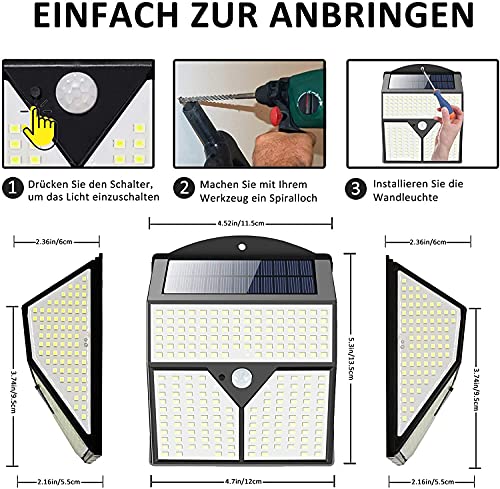 【Luce solare ad alta efficienza】 Questa luce solare si spegne automaticamente durante il giorno e il pannello solare si carica automaticamente. Più a lungo si accende il pannello solare, più la batteria si accumula. Aggiornato 436 LED e ampio angolo di luce 270 °, più luminoso di notte.
