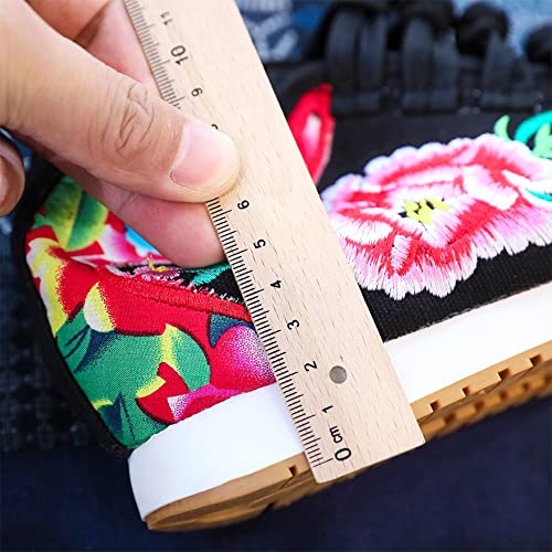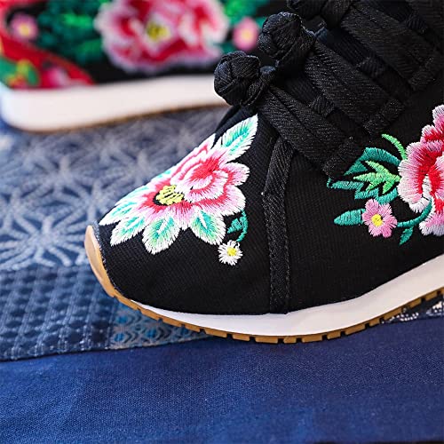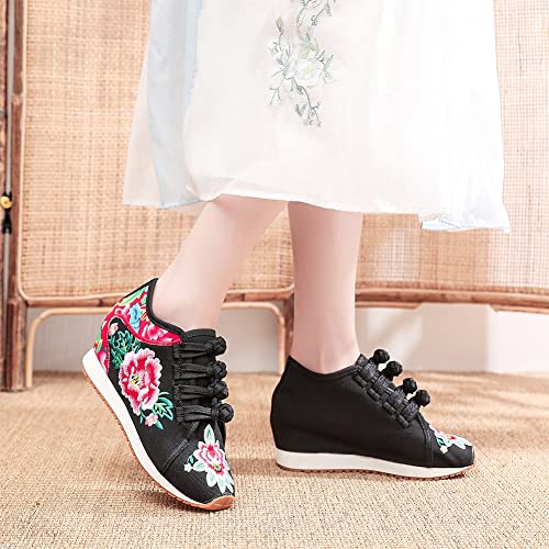HOTRA Fiore Ricamato da Donna Scarpe con Plateau Comode Sneakers con Zeppa in Tela Scarpe Invernali con Fodera in Pile Caldo (Color: Black, Size: 39 EU)