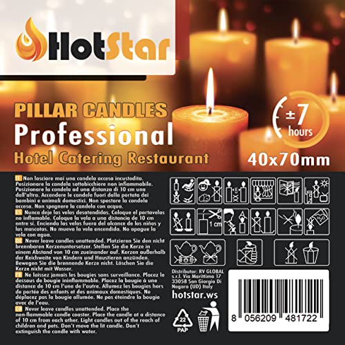 HotStar Candele Cilindriche Cera a Colonna Durata 7 Ore d40 h70 mm Colore ROSSO Antigoccia (16 Pezzi Moccoli 40x70 Rosso)