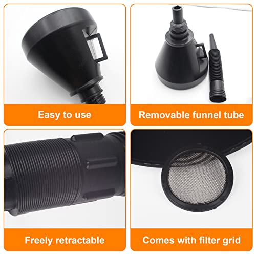❤️【Ampio utilizzo】Il set contiene 2 imbuto con filtro per gasolio, un singolo imbuto carburante è composto da un filtro, un imbuto e un tubo staccabile, adatto per acqua, gas naturale, cherosene, petrolio, benzina, olio per motori, liquido di raffreddamento.