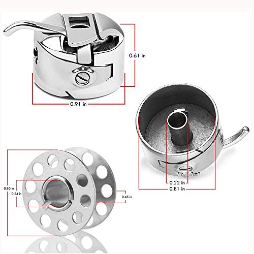 Bobina e custodia della macchina da cucire: realizzata in materiale metallico, robusta e durevole. Queste bobine possono smettere di girare più velocemente e impedire efficacemente che il filo si srotoli o si aggrovigli durante la cucitura. La custodia della spolina viene utilizzata come parte alternativa della macchina da cucire con un sistema di spolina montato frontalmente.