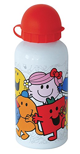 FUN HOUSE 005189 Borraccia in Alluminio per Bambino, Motivo: Monsieur Madame, in Alluminio, Colore: Bianco, Dimensioni: 6,4 x 6,4 x 17 cm