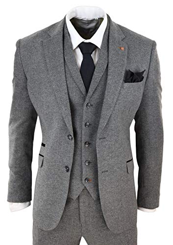 House Of Cavani Abito Formale da Uomo 3 Pezzi Classici Tweed Anni 1920's - Grigio Scuro 36UK, 46IT Giacca - 30" Pantaloni