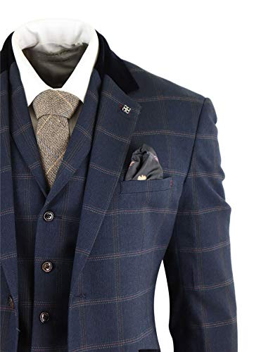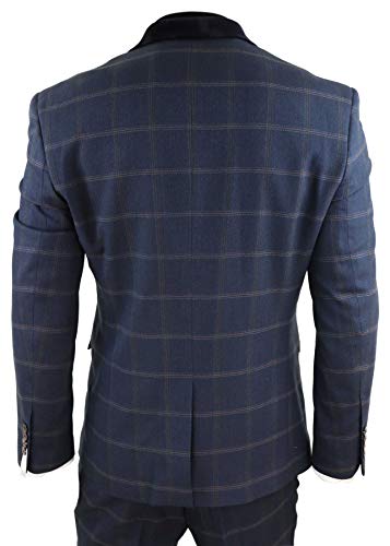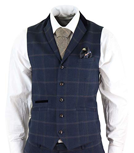 House Of Cavani Abito 3 Pezzi da Uomo Blu Navy A Scacchi Vintage Blinders Blu Navy 54