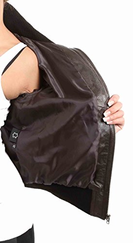 House Of Leather Giacca di Cuoio Reale del Bomber delle Donna Blouson Casuale Breve di Slim Fit Motto Marrone (Large)