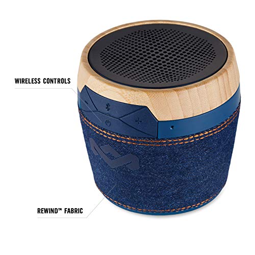 House of Marley Chant Mini Cassa Altoparlante Portatile Bluetooth Wireless, Design Resistente agli Schizzi (IPX4), Microfono Integrato, Ingresso Ausiliario, Moschettone, Blu/Legno