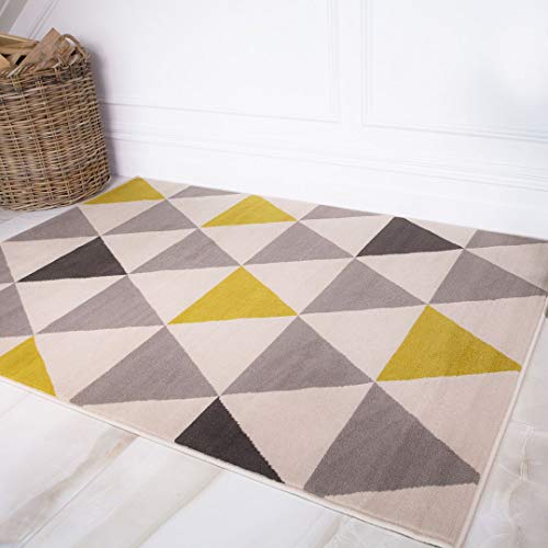The Rug House Milan Tappeto con Motivo a Triangoli Arlecchino nei Colori Ocra Giallo Mostarda Grigio Beige per Salotto Tradizionale 80cm x 150cm