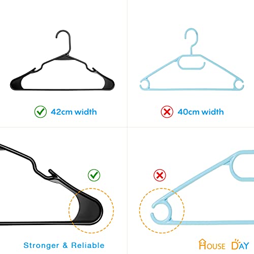 HOUSE DAY Robusta Grucce Appendiabiti Salvaspazio in Plastica, Appendini Armadio,42cm larghezza, Set di 20, per Giacche Leggere, Camicie, Pantaloni, Pullover, Top, Polo, Gonne (Nero)