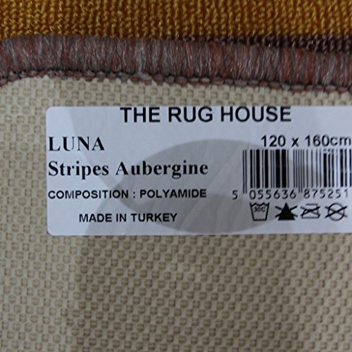 The Rug House Luna, Tappeto Economico per Ingresso Lavabile in Lavatrice, Antiscivolo,a Righe Color Viola Melanzana Chiaro - 6 Formati
