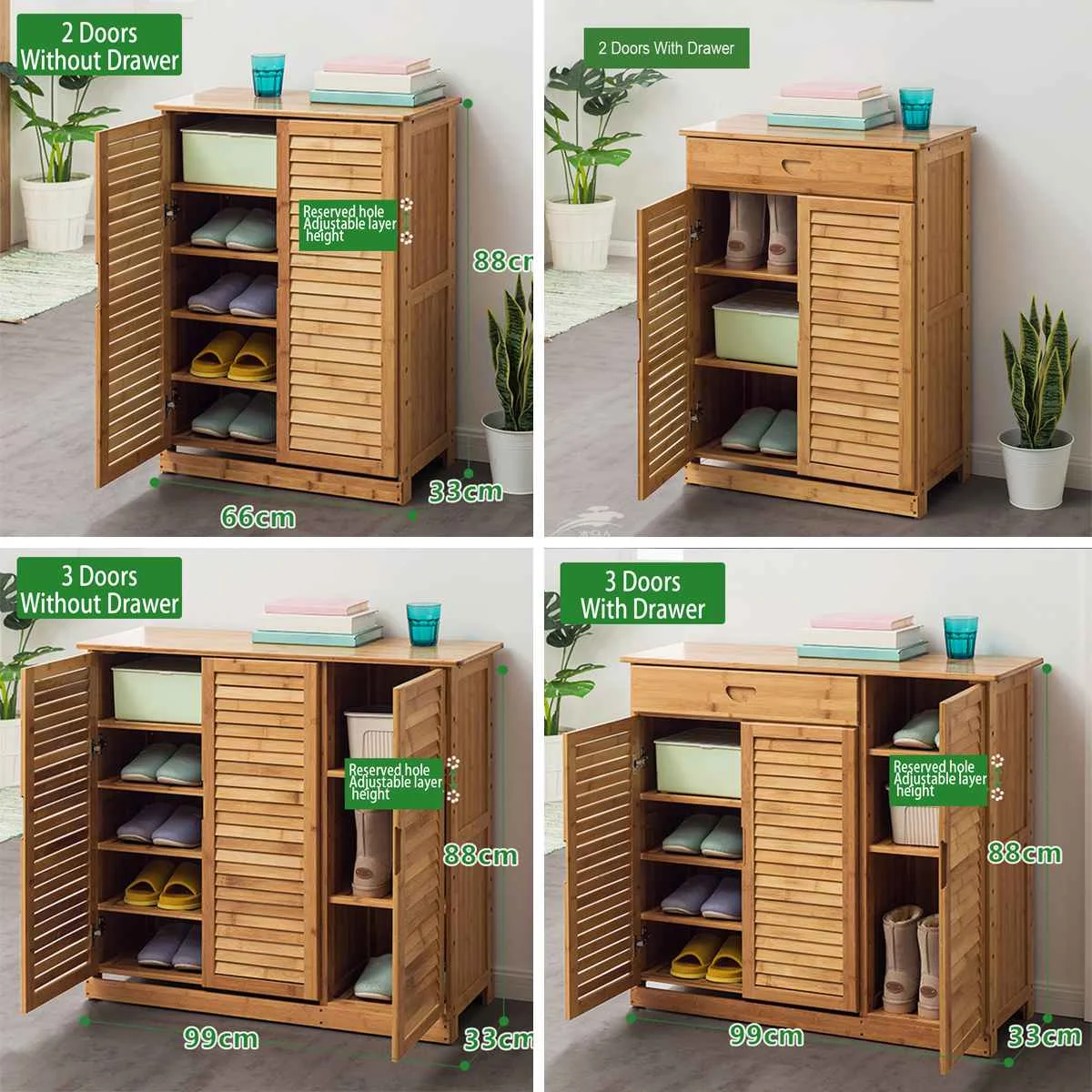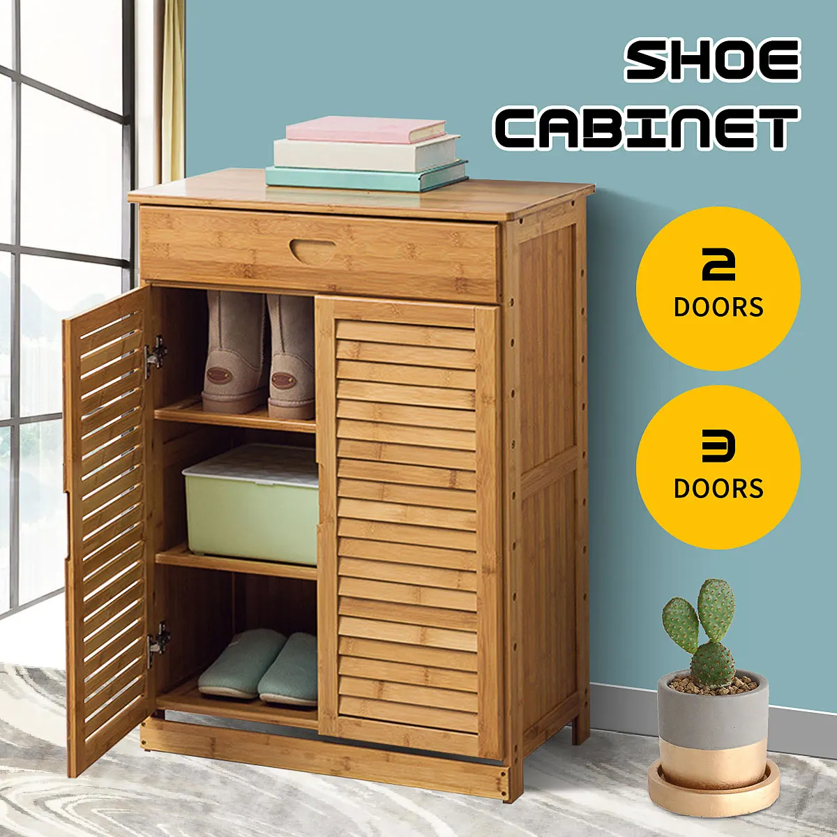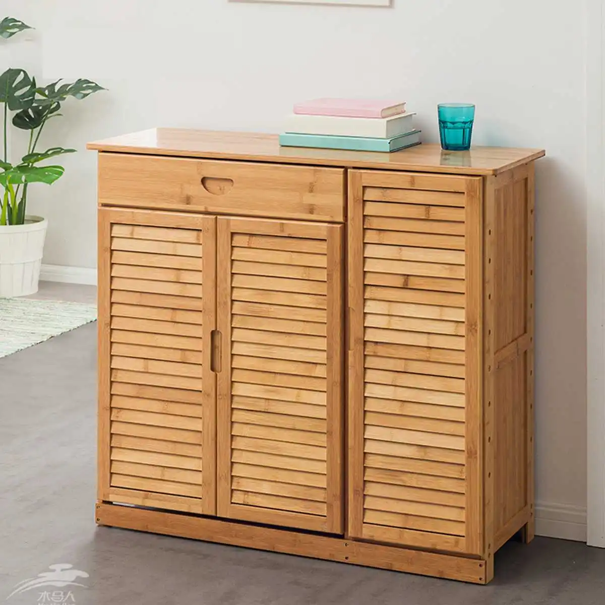 Household Shoe cabinet door storage shoe rack multi-layer simple economic type rack Bamboo wood dormitory with Drawer dustproof