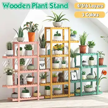 Household Shelf Multi-storey Balcony Decorate Solid Wood Quality Indoor Living Room Green Luo Flowerpot Shelves Flower Rack