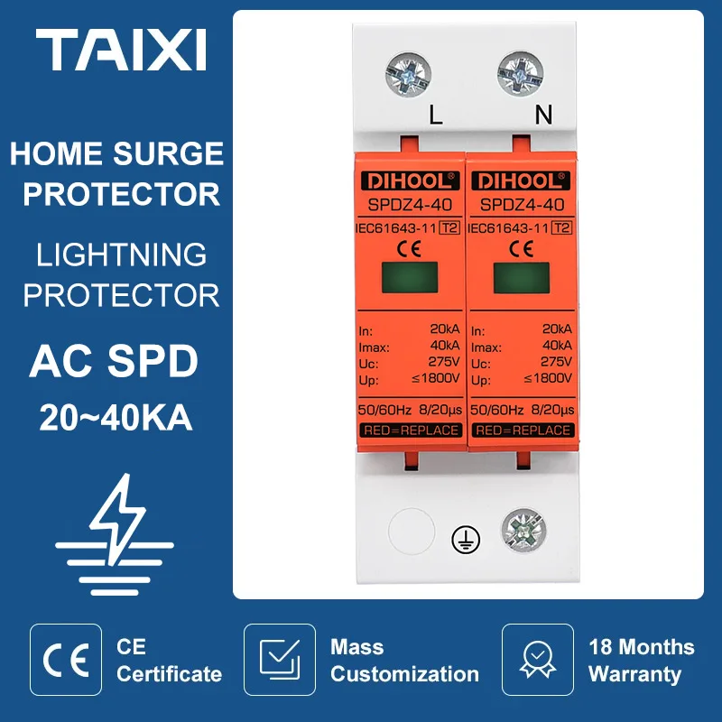 Household Surge Protective Device Surge Protector MCB AC 275V SPD 2P 20KA~40KA Lightning Protection Ground Protection