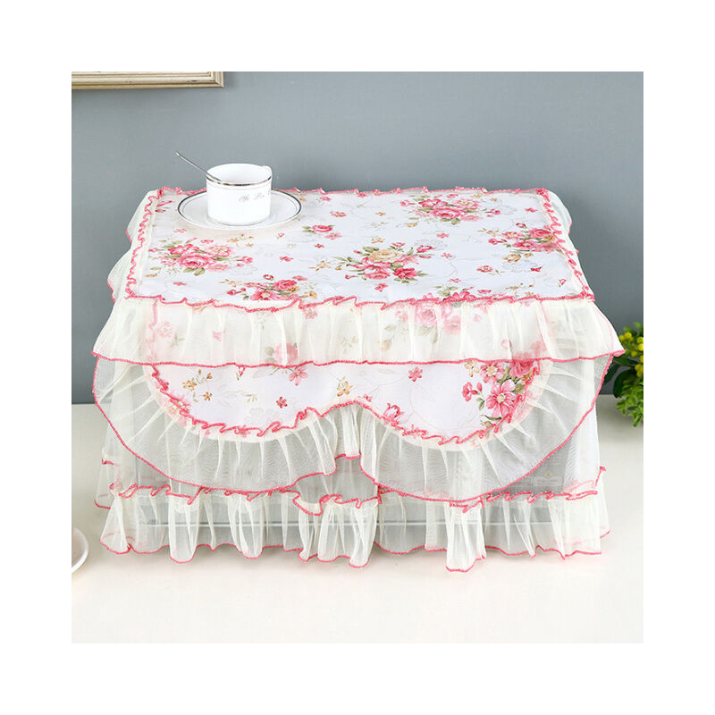 Name - Microwave Cover [Material] Jacquard fabric + lace [Size]30*50*35cm [Specifications] Free size, suitable for microwave oven length 50 width 35 height 30 [Color] purple/flesh/red Product features: the product is all-inclusive on all sides, effectively preventing dust and oil stains.