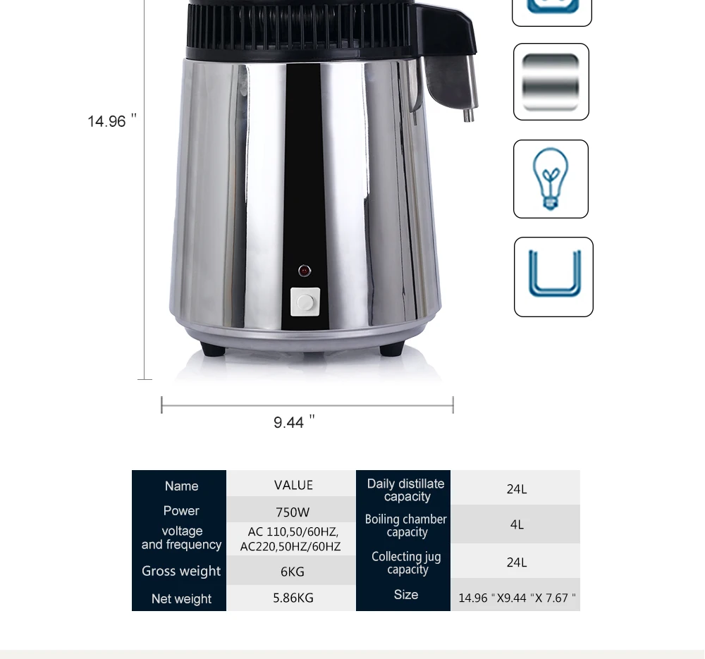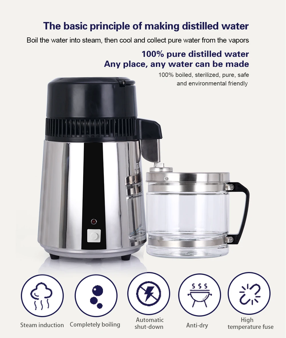 Household 4L Water Distiller Distilled Water Machine Distillation Purifier Filter Stainless Steel Dental Laboratory Water Filter