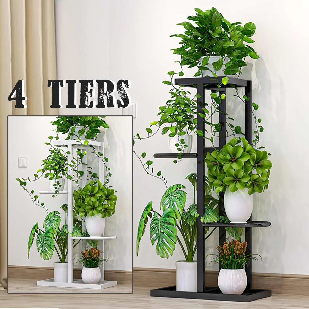 4 Tier Household Wrought Iron Craft Multi-layer Plant Stand With Four Sides of Fence Rack Balcony Indoor Garden Flower Pot Shelf