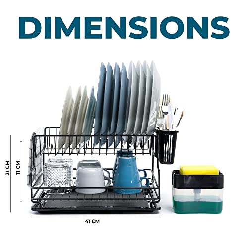 HOUSEMATE Scolapiatti da Appoggio in Acciaio Inossidabile a 2 Livelli, il Scolapiatti da Lavello include Portaposate rimovibile, Scolapiatti da Lavandino Include dispenser di sapone e spugna.
