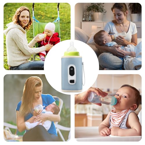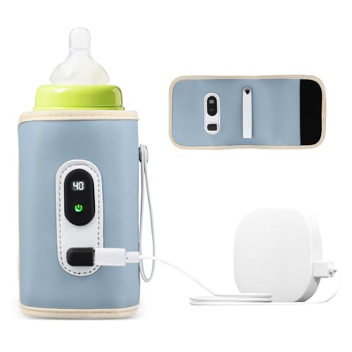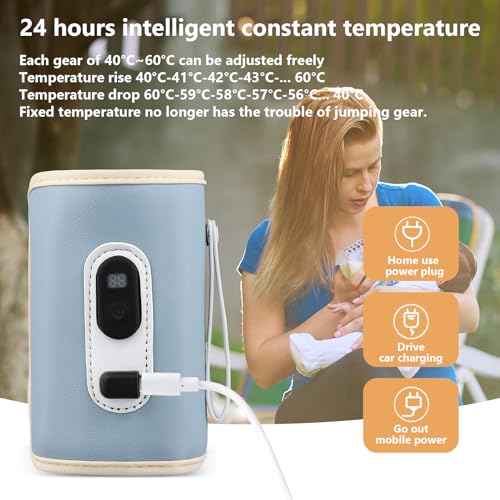HOUSINN Scaldabiberon Portatile, USB Scaldabiberon Borsa Termica Biberon, Scalda Biberon Neonato Portatile con Display Temperatura, 40-60℃ 21 Livelli Regolabile per Auto, Viaggi, Casa (blu)