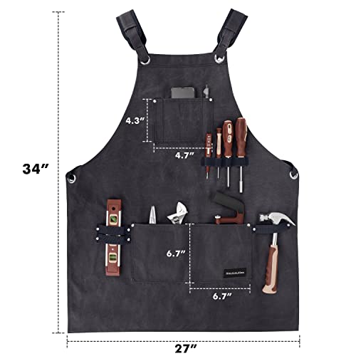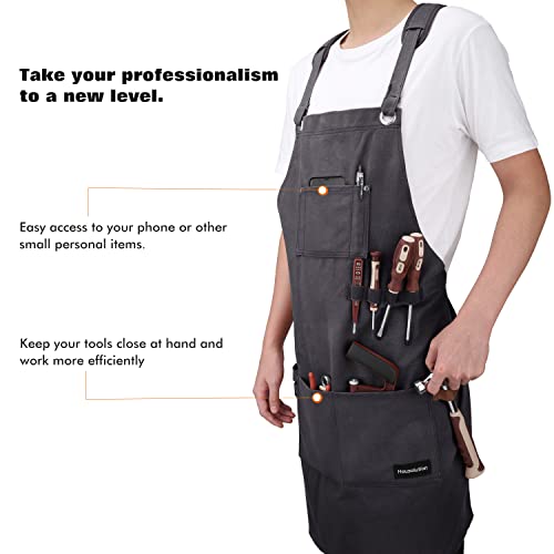 Housolution Grembiule da Lavoro, Grembiule in Tela Cerata Impermeabile con 5 Tasche, Cinturini Regolabili, Accessori Utensili da Lavoro, Grembiule per Falegname, Pittura, Viola Grigio