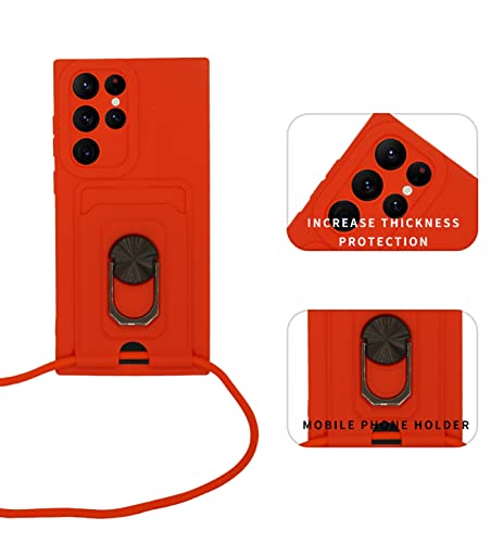 HOUSON Custodia per Samsung Galaxy S22 Ultra, in silicone con catenina per cellulare in metallo, supporto per carte di credito, rosso