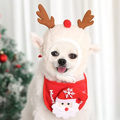 Housoutil Cane di Natale Bandana Cappello Set Pet Sciarpa del Triangolo Bavaglini Gatto Costume di Natale Decorazione Accessori