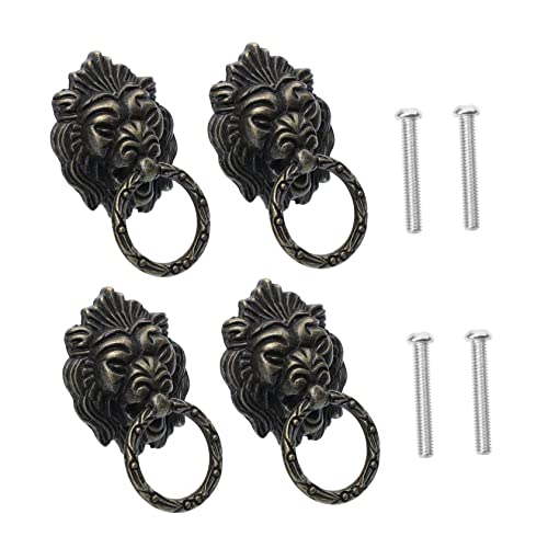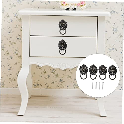 Housoutil 4 Pezzi Maniglia Testa Di Leone Decorativa Tiri Del Cassetto Tiri Del Cassetto Dell'Armadio Antico Manopole Cassetti Testa Di Leone Anello Tira Maniglia Maniglia Dell'Armadio