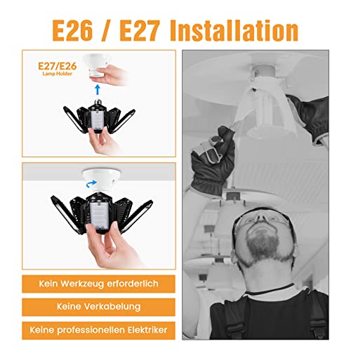 【Installazione semplice】 Luce per garage E26 / E27, compatibile con prese E26 / E27, l'installazione è facile come avvitare una lampadina, plug and play, installazione rapida, nessun attrezzo, nessun cablaggio o elettricista professionista, risparmia tempo e fatica. Nota: spegnere il dispositivo prima dell'installazione.