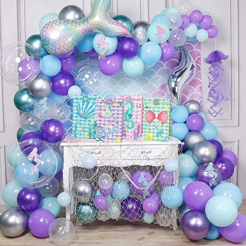 HOUSTAR 47Pcs Sirena Gadget Compleanno Bambini, Slap Bracelets Gadget Braccialetti Slap Sirena e Sacchetti Regalo Tatuaggi Fermagli Capelli Segnalibri Regalo Festa Compleanno Bomboniere Bambini