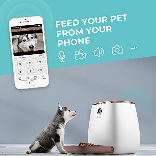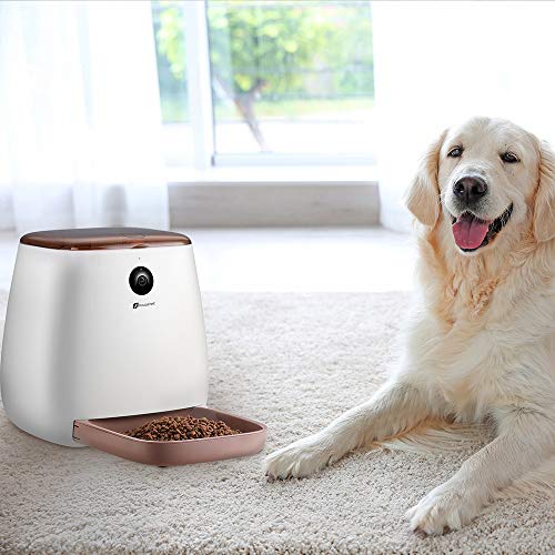 Houzetek Alimentatore Automatico, per Cani o Gatti, Controllo App Remoto, con Timer Programmabile, Dispenser Cibo Cani 3.3L, 1080P HD Fotocamera Incorporata, Funzione di Registrazione Vocal