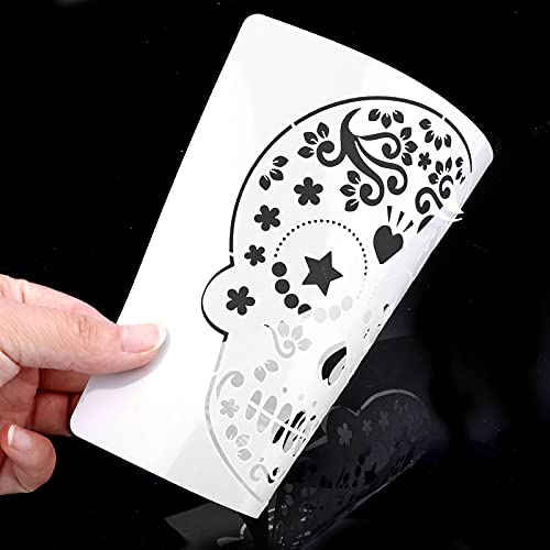 【Ampie Applicazioni】 Set di stencil con teschi di zucchero adatti per bambini artigianato fai da te di Halloween, forniture per artistico e artigianato di teschio di Halloween, graffiti da colorare di teschi di Halloween, attività di progetti scolastici di Halloween, scrapbooking fai da te con teschi di Halloween, pittura per diario di Halloween, scolpire gli stencil di zucca di Halloween, o per biscotti decorativi di Halloween, biscotti, torte, caffè e così via.