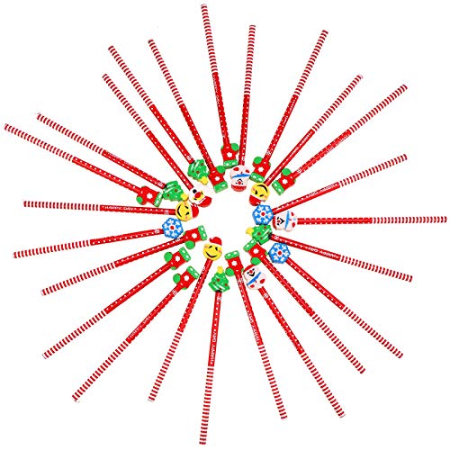 Matite di Natale: ci sono matite da 24 pezzi, come albero di Natale, Babbo Natale, pupazzo di neve, renne e così via, aggiungi il favore della festa di Natale, con una gomma sopra la matita, comoda da usare.