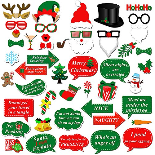 Howaf 47Pcs Natale Photo Booth Props Foto Booth Accessori Decorazioni Fai da Te Occhiali Cappelli Baffi per Matrimonio Natale Compleanno Decorazione Forniture Regalo Natale