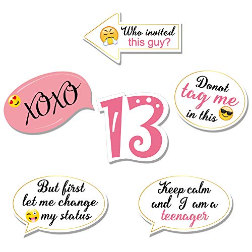 È necessario un assemblaggio facile- questo set di 13 ° compleanno fornisce tredici oggetti di scena per foto di compleanno con forti bastoncini di legno colla perline di perle e linguette adesive da 3m, basta attaccare i puntelli di foto fatti apposta per foto ai perni di legno.