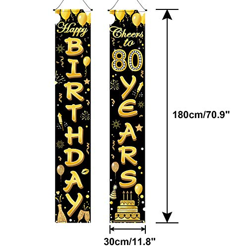 HOWAF 2pcs 80th Birthday Party Decorations Black And Gold, Happy Birthday Banner, Cheers to 80th Years Banner, 80th Birthday Door Sign Banner Decoration for 80 Years Old Birthday Supplies