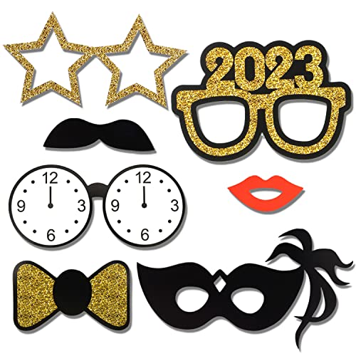 HOWAF 2023 capodanno Photo Booth Props Foto Booth Capodanno Accessori Fai da Te occhiali baffi labbra cappelli Capodanno Gadget per feste di Capodanno decorazioni Forniture, 25 Pezzi