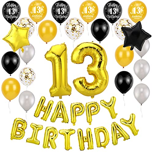 HOWAF Oro Nero 13 Anni Compleanno Decorazione per Ragazzi Ragazze Adolescenti, 13 Anni Compleanno Addobbi con Buon Compleanno Palloncini Striscione Oro Nero 13 Anni Palloncini in Lattice Coriandoli