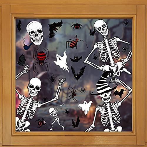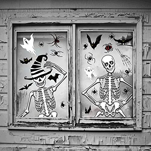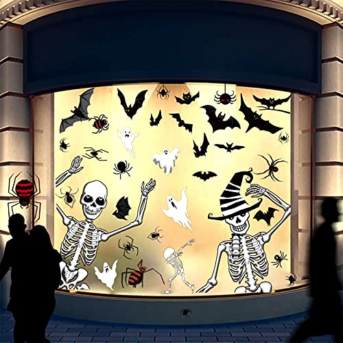 HOWAF Halloween Adesivi per Finestre Casa Decorazioni di Halloween, 50pcs Halloween Stickers per Porta Esterno Decorazioni di Halloween, Horror Halloween Addobbi, Scheletro Pipistrello Ragni Fantasma