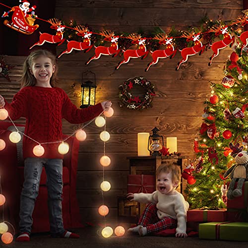 HOWAF Natale Decorazioni, Natale Renna Bunting, Slitta di Babbo Natale Banner Natalizia Ghirlanda Decorazioni per Appeso Feste di Natale Vacanze Invernali Compleanno Decorazioni per casa