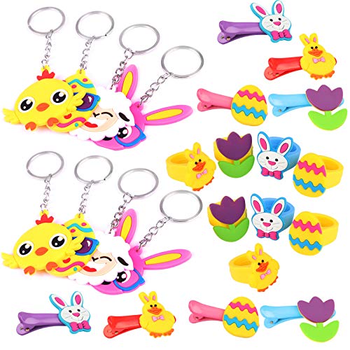Mini giocattoli: i giocattoli pasquali sono forniti per riempire le uova di Pasqua. Le uova a sorpresa piene di giocattoli porteranno diverse sorprese ai bambini quando apriranno le uova e aumenteranno anche l'atmosfera pasquale. Piccoli doni includono portachiavi pasquali, forcine o anelli.