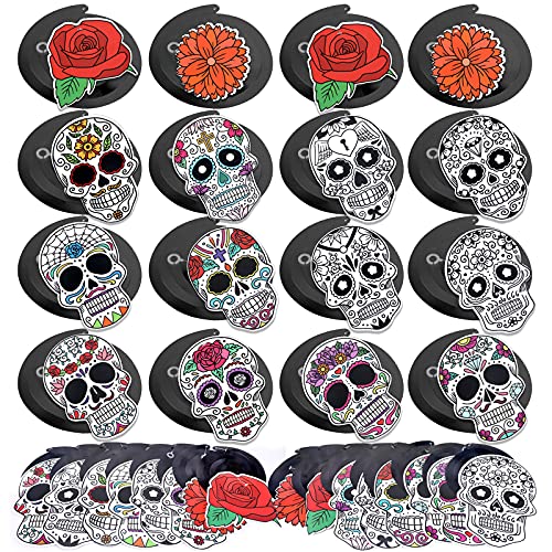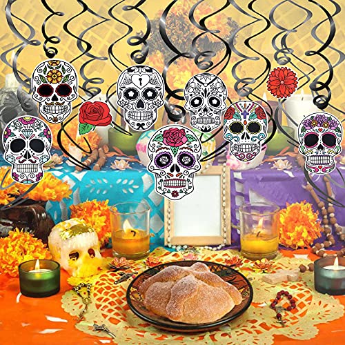 Includi - Contiene 16 pezzi di ricciolo appeso del giorno dei morti con ritagli di "teschio di zucchero", 14 pezzi di decorazioni a doppia spirale, che sono sufficienti per la tua festa di halloween, il giorno dei morti, la festa del Dia De Los Muertos, la festa della festa o le decorazioni per feste messicane.