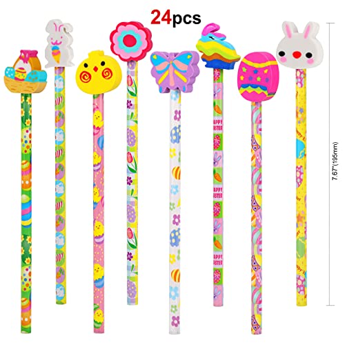 Set di matite pasquali: ci sono matite da 24 pezzi, come coniglio, fiore, farfalla, uovo di Pasqua, pulcino e così via a tema primaverile, aggiungi il favore della festa di Pasqua, con una gomma sopra la matita, comoda da usare.