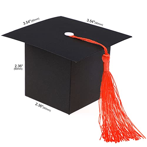Scatole di Cappello Laurea: Otterrete 30pcs Scatole Bomboniere Laurea fai da te con nappe rosse, mini dimensioni: circa 6 x 6 x 6 cm, perfetto per la cerimonia di laurea 2023, aggiungere glamour alla vostra festa di laurea.