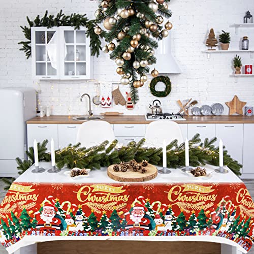 HOWAF Tovaglia di Natale Tovaglia Usa e Getta, 3 Pezzi Tovaglia Natalizia Tovaglie di Natalizio Rettangolari Tovaglia in plastica Runner da Tavola di Natale Rossa per Decorazioni Natalizie 180 x 108cm